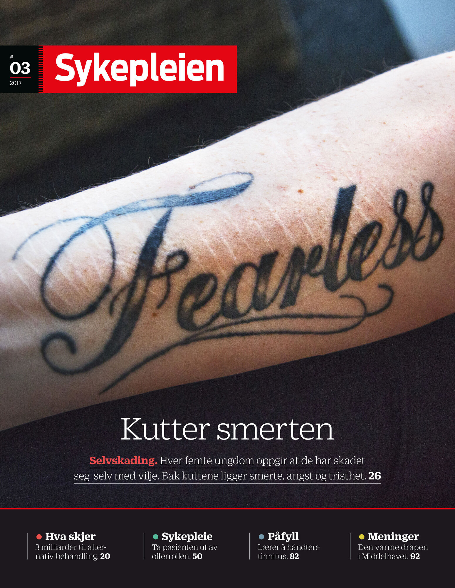 – Hvorfor jeg skadet meg mens jeg var i behandling, selv om jeg visste at det var feil. Jeg sa det var min måte å mestre følelser på. En overlevelsesstrategi. Fortalte at jeg skammet meg etterpå, følte meg mislykket. De spurte om jeg alltid skammet meg. Eller om jeg gjorde det på trass; «haha, jeg klarte det, selv om jeg er innlagt». For min del føltes det utelukkende som et nederlag: Jeg greide ikke å takle det normalt denne gangen heller.