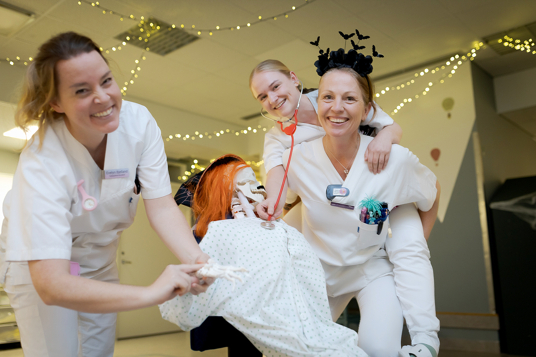 På Sykehuset Østfold på Kalnes har sykepleierne på barne- og ungdomsavdelingen pyntet til feiringen og kledd seg ut.
