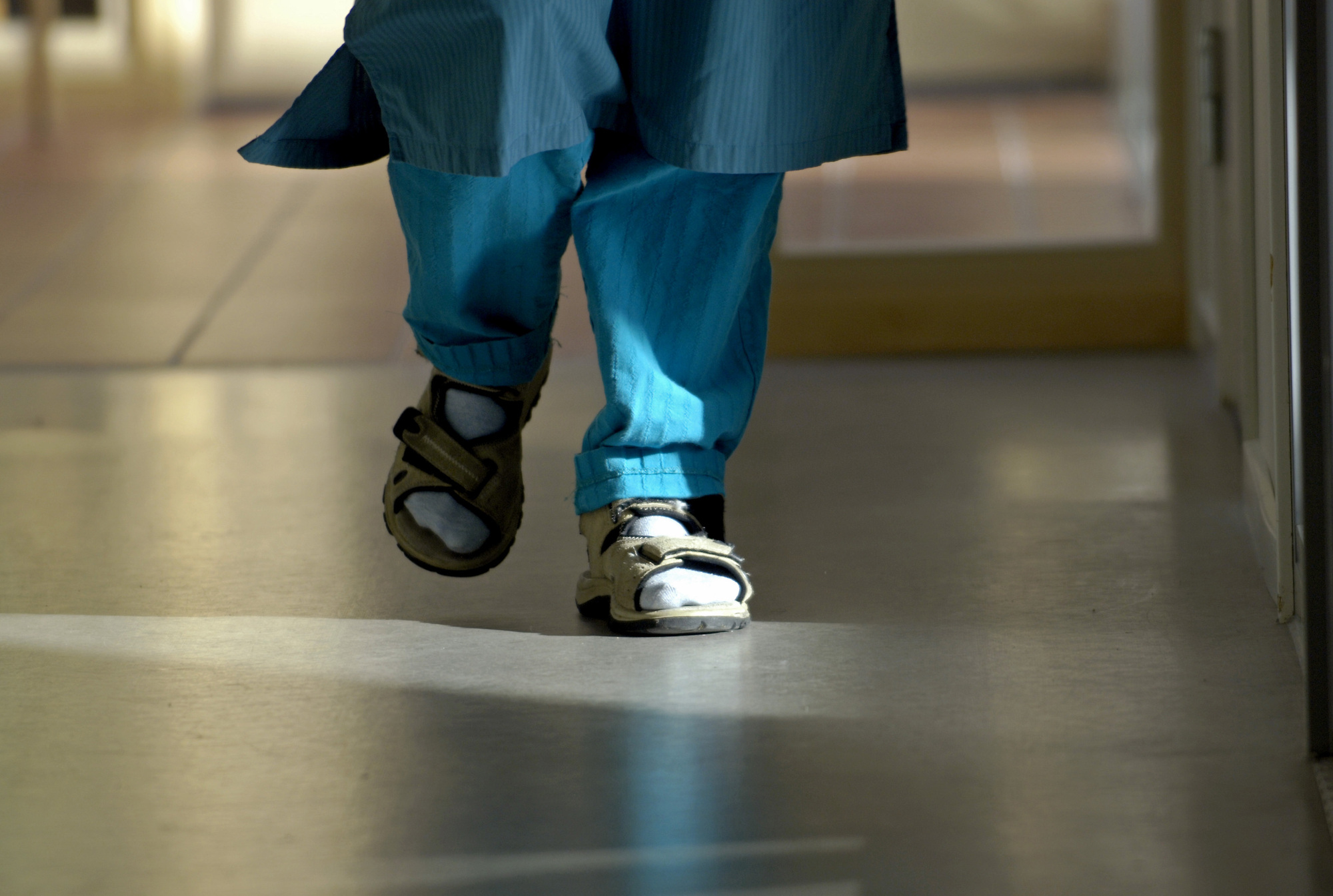 Lege som går i korridor