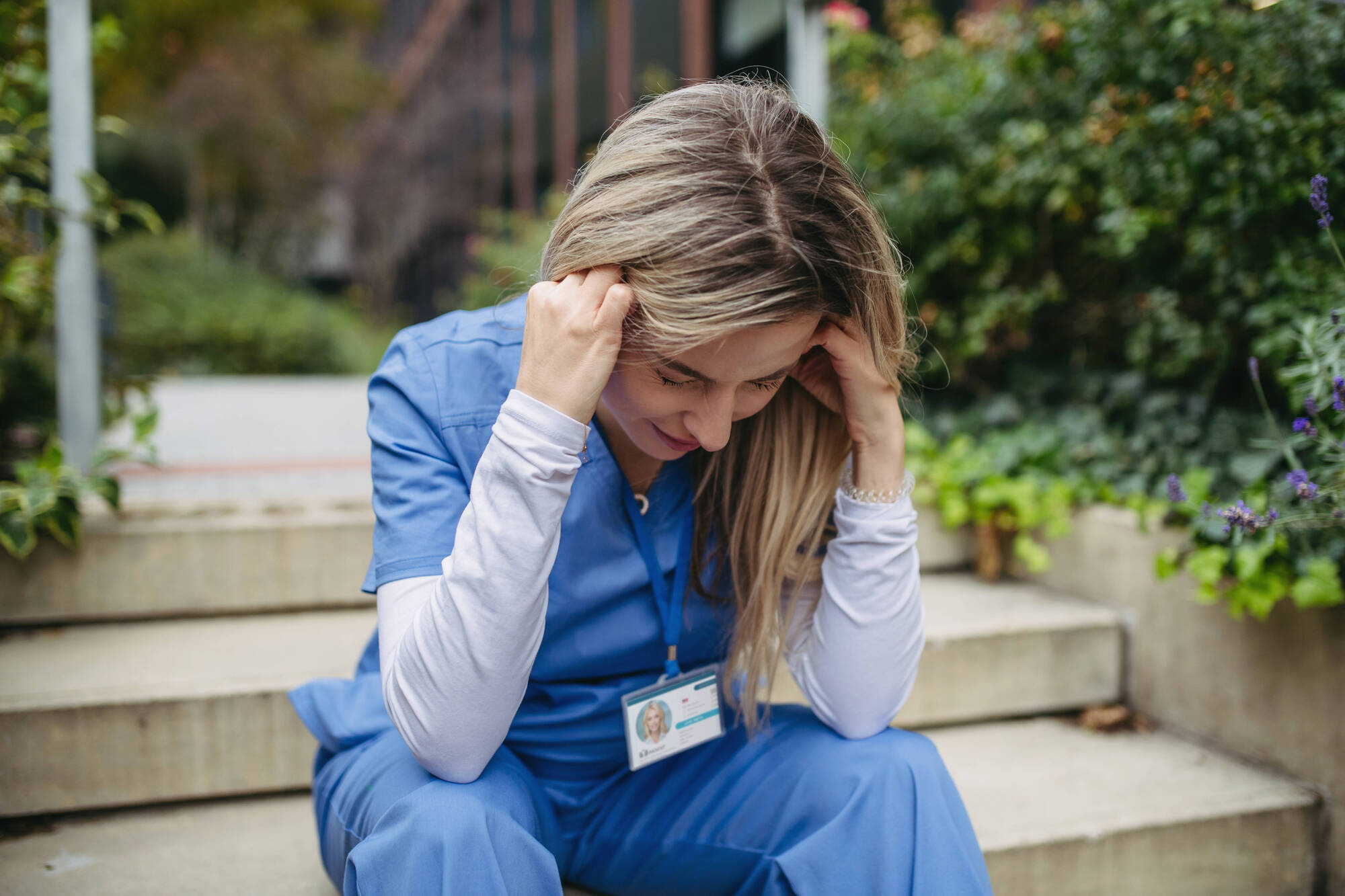 Bilde av fortvilet sykepleier