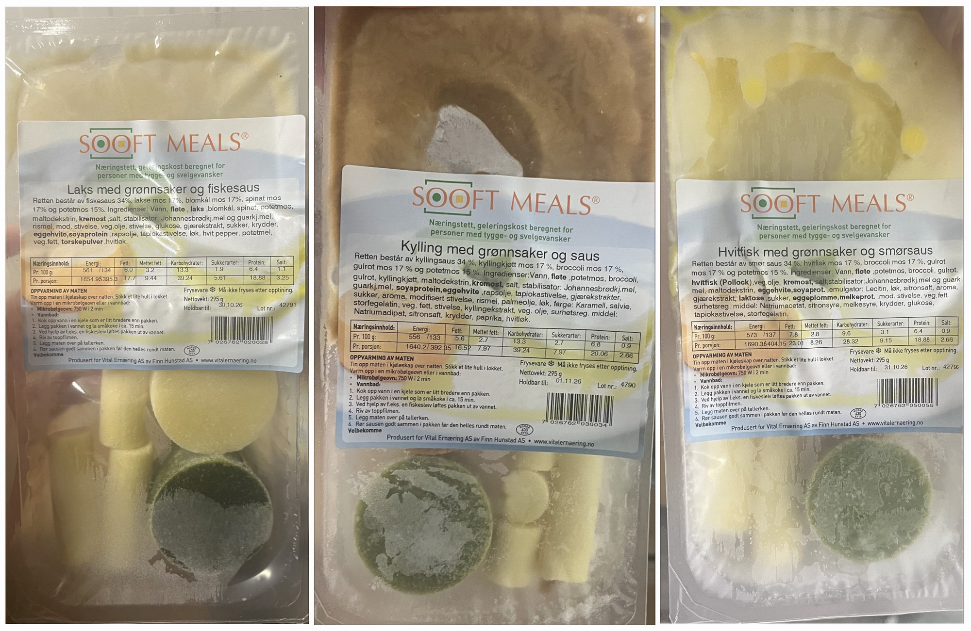 Nærmere bestemt gjelder det følgende tre produkter under merkenavnet «Sooft Meals»: Laks med grønnsaker og fiskesaus best før 31.10.2026, Kylling med grønnsaker og saus best før 01.11.2026 og Hvitfisk med grønnsaker og smørsaus best før 31.10.2026.