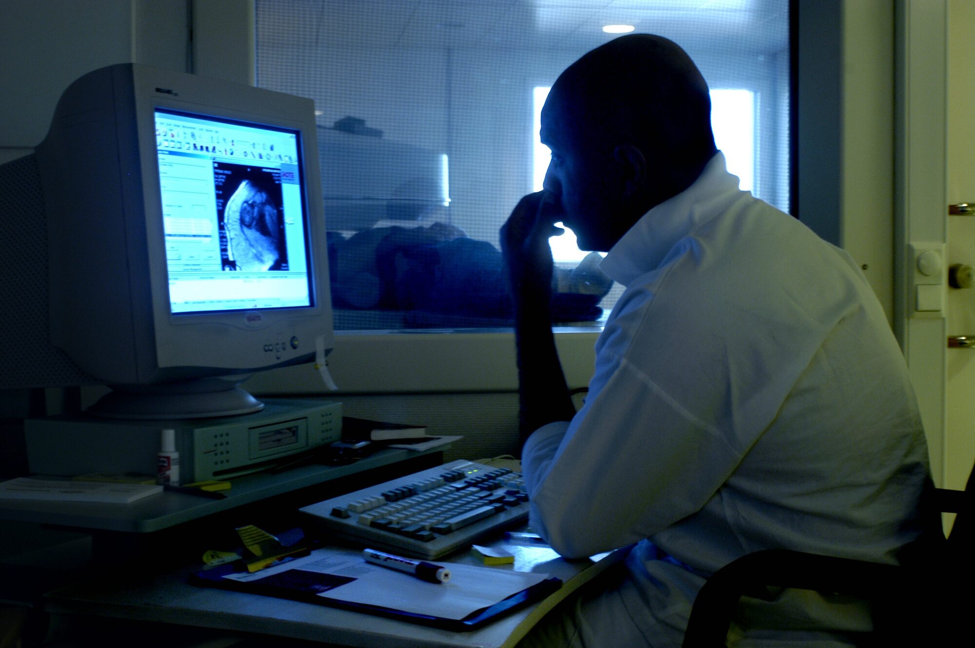 Bildet viser en radiolog som ser på røntgen
