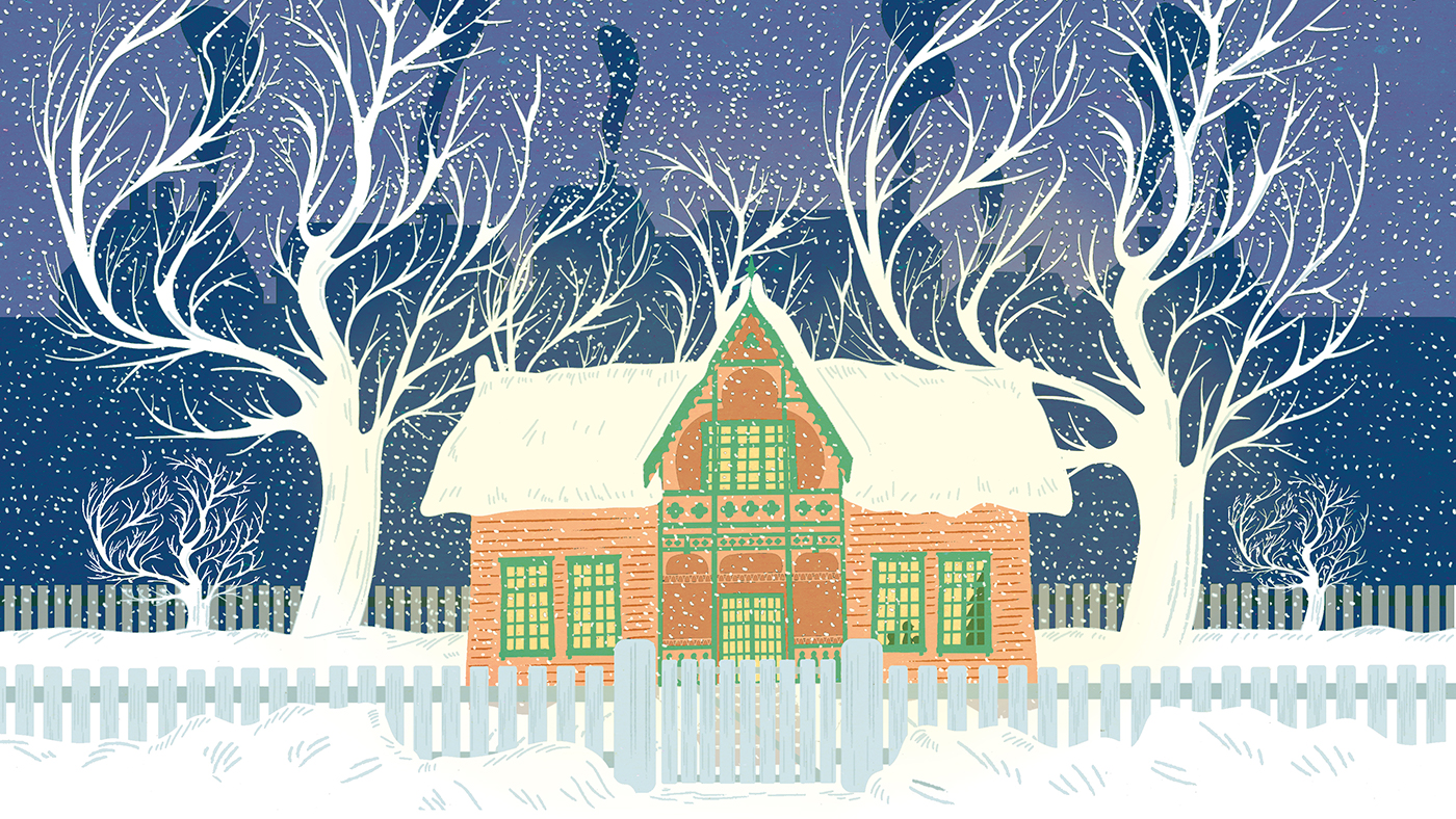 Det banka på ruta, det var kollegaen min som eg skulle vere saman med på oppdraget. Vi hutra og småsprang mellom snøfjona. Då vi nærma oss det gamle huset, kjende eg ein merkeleg varme kome mot meg. Det var som ein god energi frå huset. Eg vart brått bevisst julemusikken, matlukta og lydane frå huset.
