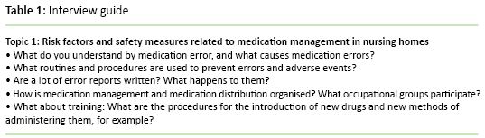 Purpose: To explore how safety measures function with a view to preventing the use of incorrect medication and adverse drug treatment in nursing homes.