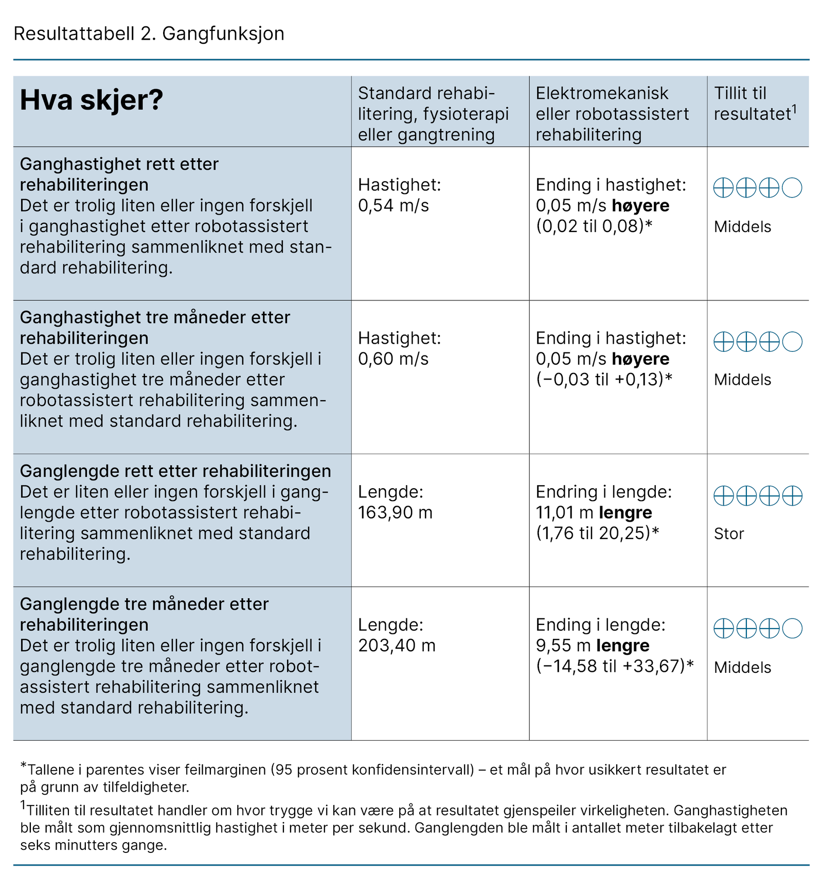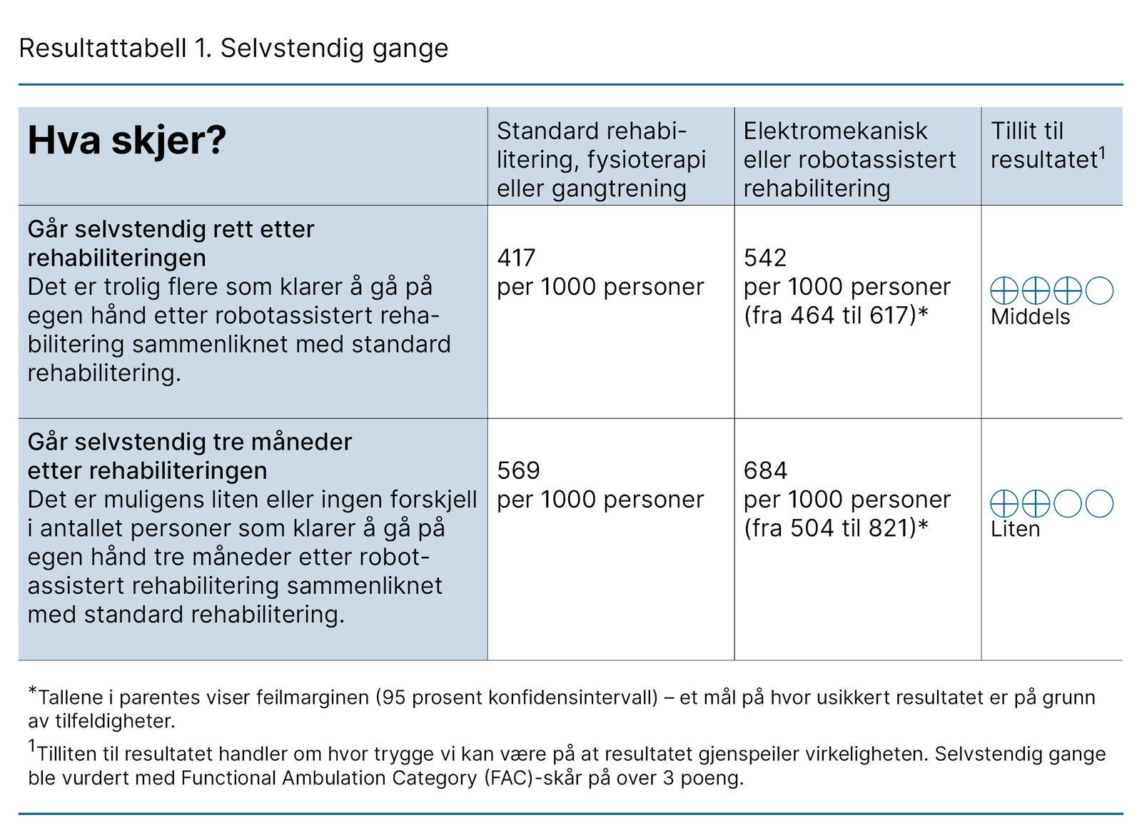 Sammenliknet med standard rehabilitering viser resultatene at robotassistert gangtrening