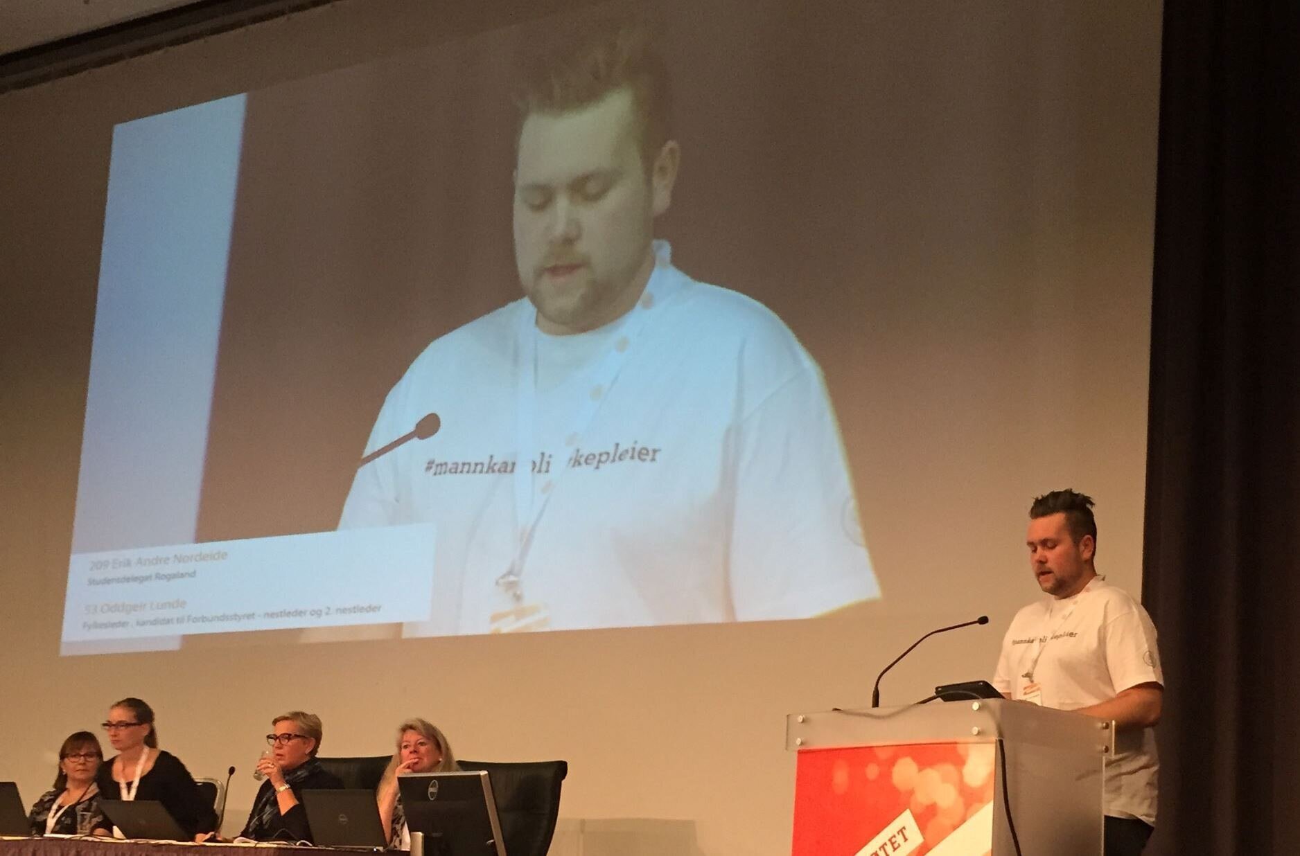 Fleire delegatar fremma eit forslag om nytt kulepunkt til NSFs prinsipprogram, med ønske om at NSF skal arbeide for kjønnsnøytrale yrkestitlar for sjukepleiarar. NSF Student støtter dette vedtaket, og meiner det er eit viktig middel for rekruttering av fleire menn til yrket.