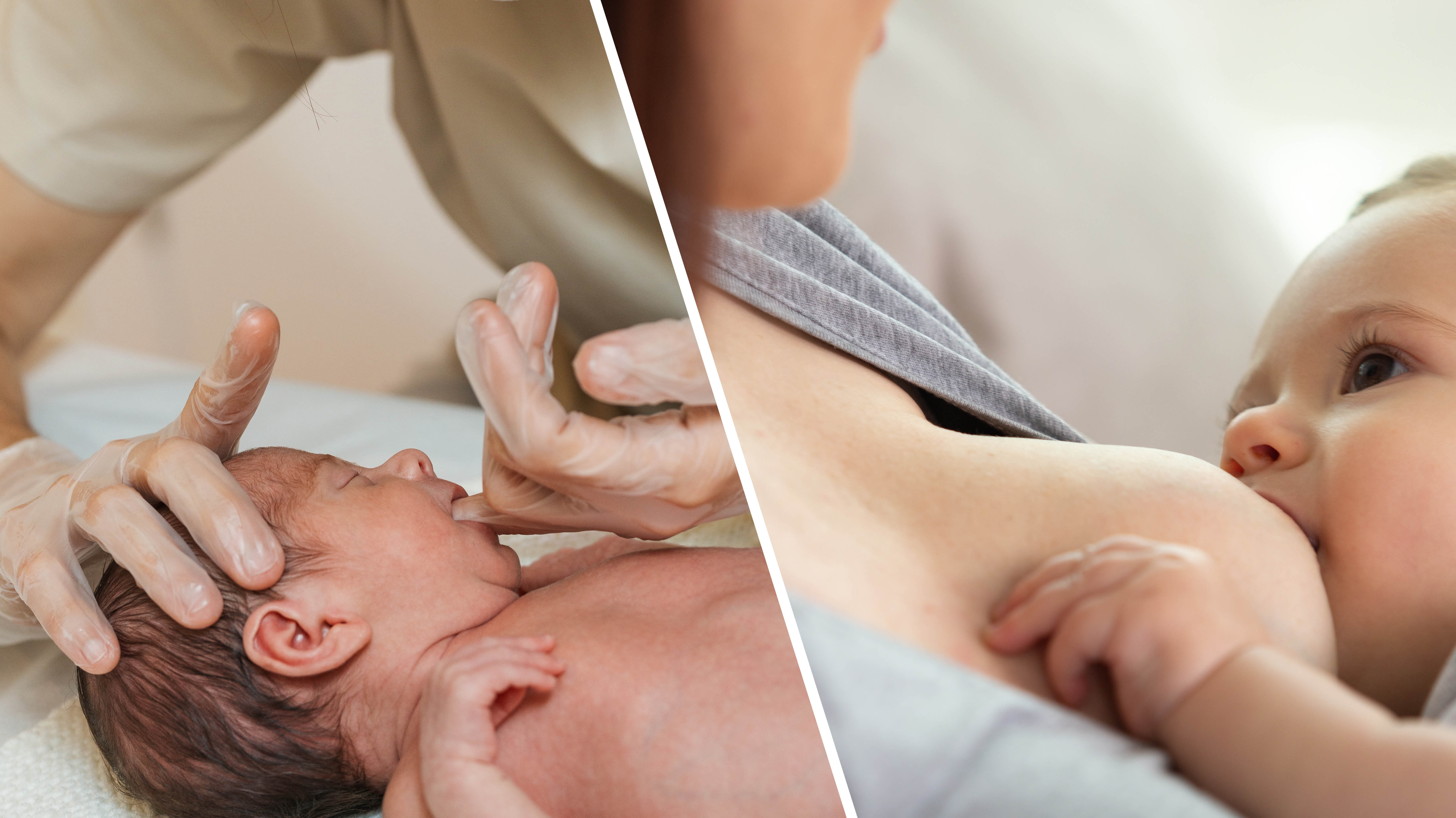 Bildet viser et spedbarn som blir ammet