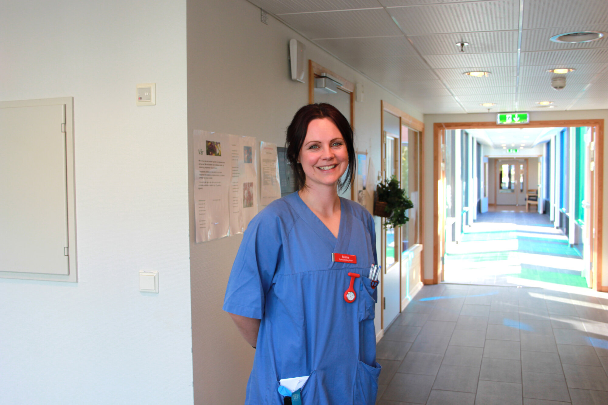 I andre etasje står Hege Fagermo inne på avdeling 1.1. Hun er helsefagarbeider med teamlederansvar. Hege er storfornøyd med organiseringen sykepleie i stab. Hun føler seg trygg i ordningen og vet at det er mulig å kontakte en sykepleier en gang for mye heller enn en gang for lite.
