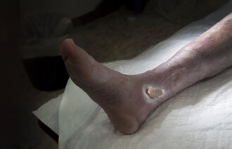 Tørr, hard og opphøyd hud, kallus, oppstår ofte rundt diabetesfotsår. Hvis kallus ikke fjernes regelmessig av kyndige klinikere, bidrar det til forsinket heling (11). Ikke sjelden ses ødemer i sårkantene, og en medvirkende årsak er inflammatoriske faktorer.